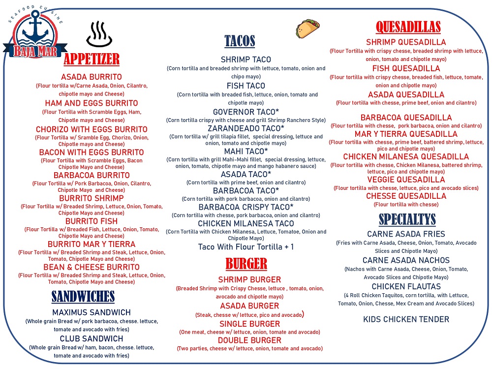 Mon: 09:00 AM - 08:00 PMCopyright © 2025 Baja Mar Seafood All Rights Reserved. Sitemap. Accessibility Statement